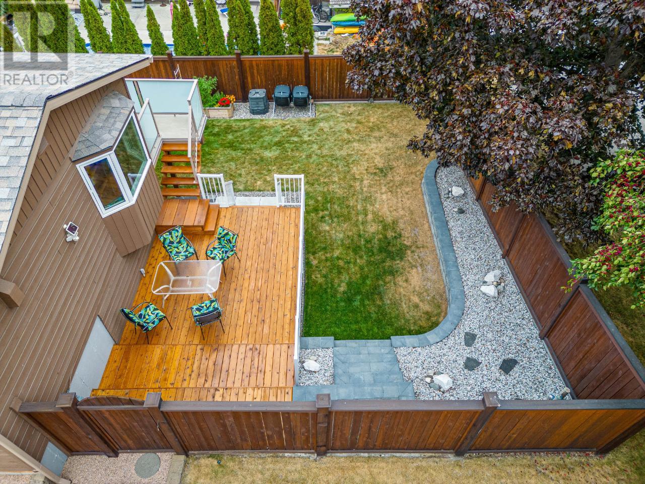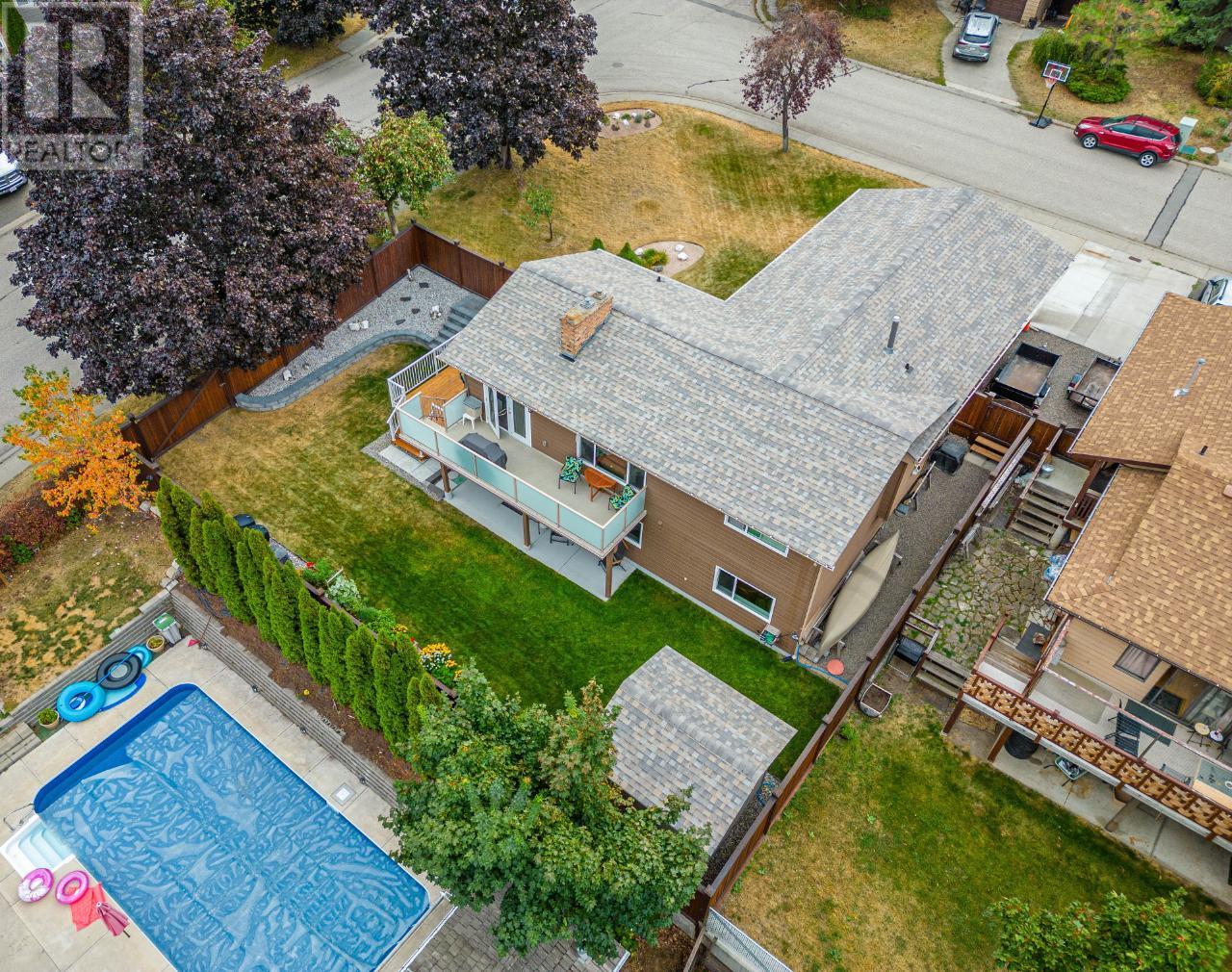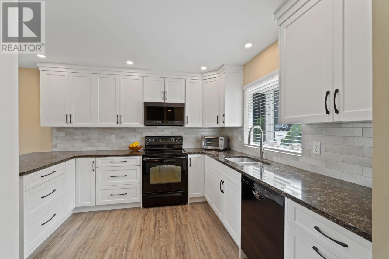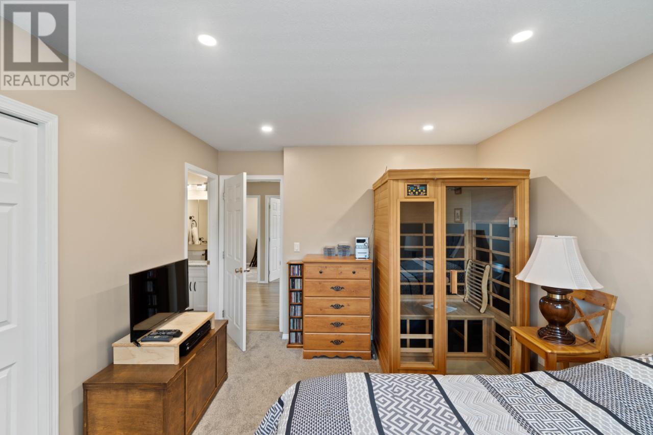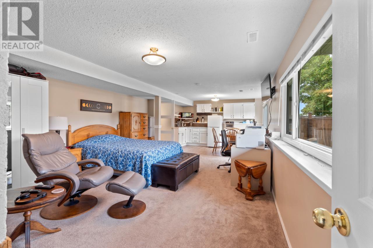 Immaculate Juniper home with numerous updates. This rancher is located in a desirable neighborhood on a quiet street, walking distance to Juniper Elementary & close to bus stop. The large corner lot provides privacy and additional space, including an expansive deck with wiring for your hot tub! The main floor features a beautifully updated kitchen with top of-the-line quartz countertops that are carried through to the bathrooms counters as well. A well placed kitchen peninsula and a spacious pantry cupboard with roll out shelving. Stunning views can be enjoyed from the main floor and the deck off the kitchen & lower deck as well. The abundance of natural light continues into the living room with a spacious layout and a gas fireplace to keep the room cozy. New luxury vinyl flooring throughout plus new bedroom & stairs carpets. The main floor hosts 3 bedrooms, including the primary with a 2 pc. ensuite and a 4 pc main bath. Downstairs you will find a bright and spacious studio suite with a separate entry, a gas fireplace and 3 pc. bath! There is tons of room for storage with custom cabinetry, a large shared laundry room downstairs and a den! Fenced yard, with 3 raised garden beds, mindfully placed access gates for an added element of ease moving in and doing yard work, is beautifully manicured with a well sized storage shed and underground irrigation. Ample parking, including RV parking and 30 amp plug outlet. Updates include: new roof (2023), gutters and facia (2022), 200 amp service, built in storage cabinets, epoxy garage floor, updated pot lighting, new hot water tank (2019), new deck railing (2022), and many more. Ask for the full list of updates! Measurements are approximate. (id:17834)